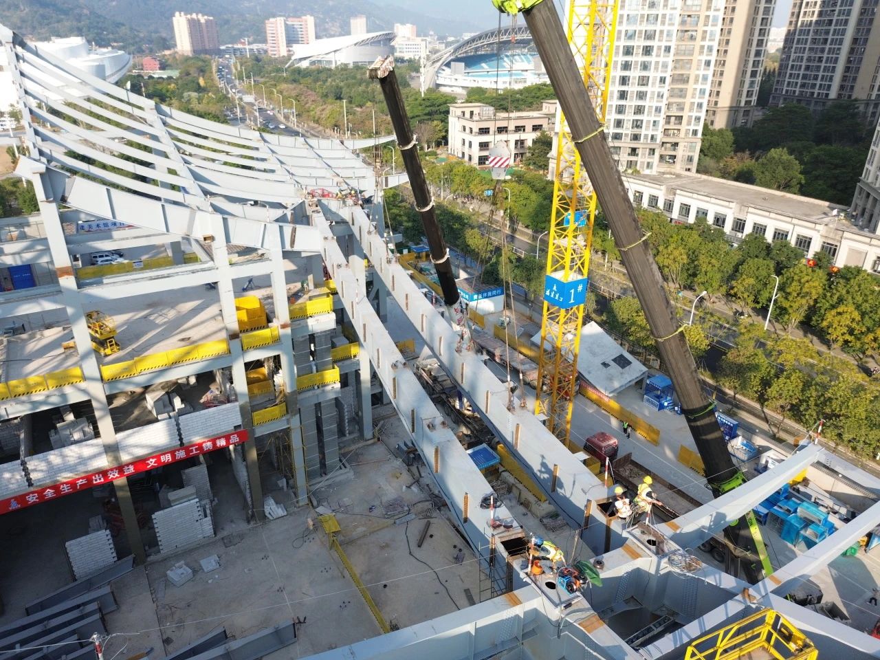 為確保項目鋼結構工程施工順利完成并保證施工質量,福建建科院權屬建研檢測公司嚴格按照檢測標準,全方位把控項目關鍵環節。從該項目鋼結構原材料檢測,到焊接質量無損檢測、防腐及防火涂層厚度檢測,技術人員在每個環節都精益求精,嚴格把控細節。憑借專業嚴謹的檢測工作,助力兩條大跨度鋼結構箱型屋蓋梁安裝達到合格標準,順利完成鋼結構工程施工。這一重要里程碑的完成,為項目整體進度奠定了堅實基礎,更以"開門紅"的優異成績,為打造城市文化新地標注入強勁動能。