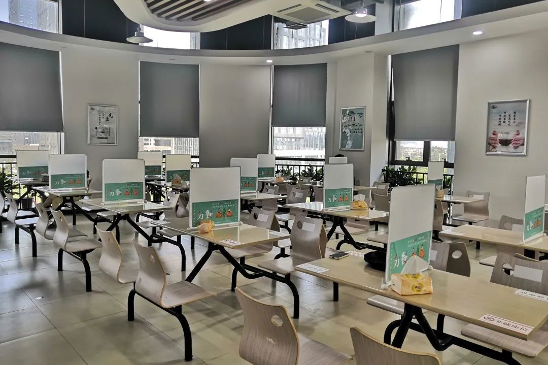 加強職工出行管理,鼓勵職工實行“兩點一線”上下班模式。認真做好職工健康監測,保持環境清潔衛生,每日進行辦公場所日常消殺,定期開展大面積消殺。食堂采購定制餐桌隔離板,引導職工分批就餐,并按桌面就座位/非就座位標識斜對入座,用餐時減少交流。通過公司釘釘云課堂上線“新冠肺炎疫情個人防護篇”及“辦公場所預防臨時指南”課程,組織職工通過釘釘平臺學習,提高個人防護水平。