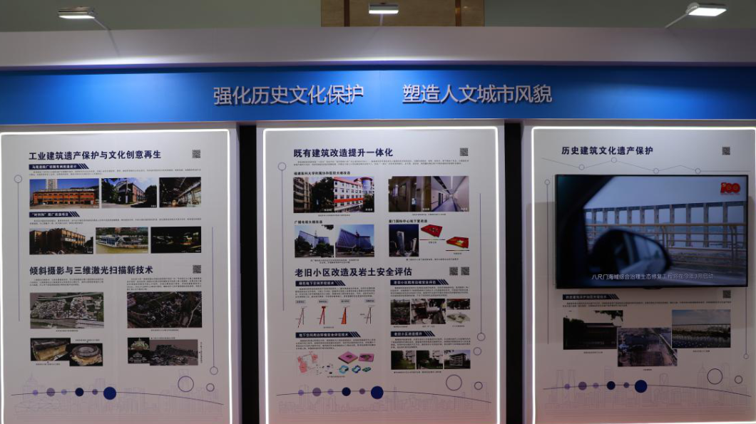 主要展示歷史建筑保護、既有建筑功能改造提升、老舊小區改造及巖土安全評估、工業遺產保護與文創再生、傾斜攝影等方面成果。